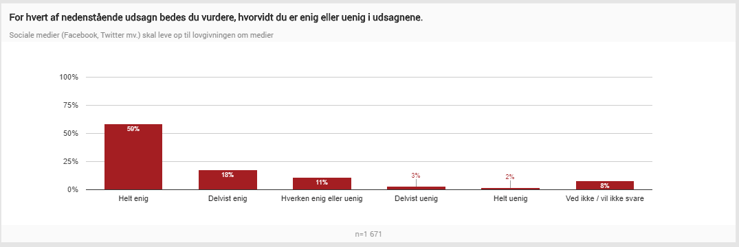 Udover et ønske om, at medierne lever op til formelle lovkrav, bør de sociale medier også tage et større ansvar for at moderere den hårde tone, som eksisterer online. Det mener 51 % af de unge i alderen mellem 16 og 25.